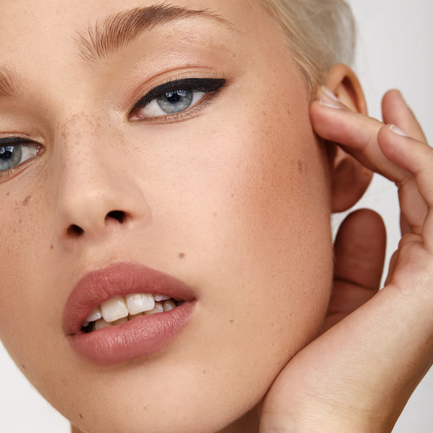 Onyx is our deep black matte gel liner—intensely pigmented and microplastic-free. Designed to create ultra-precise lines or softly smudged edges, it glides on effortlessly and sets to a long-lasting finish. This water-based liner sets to stay in place all day without smudging or fading.