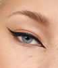- Wing/Graphic: Create an upturned elongated eye Starting from either the inner lashes or the lashes above the inner edge of the iris, using Aleph Liner/Brow Brush, press Gel Liner Onyx into the base of the lashes, then gradually build to a thicker line at the outer corner. Position Liner/Brow brush at an angle following the up curve of under eye lashes to mark the wing, then meet with the outer thickness of the line.