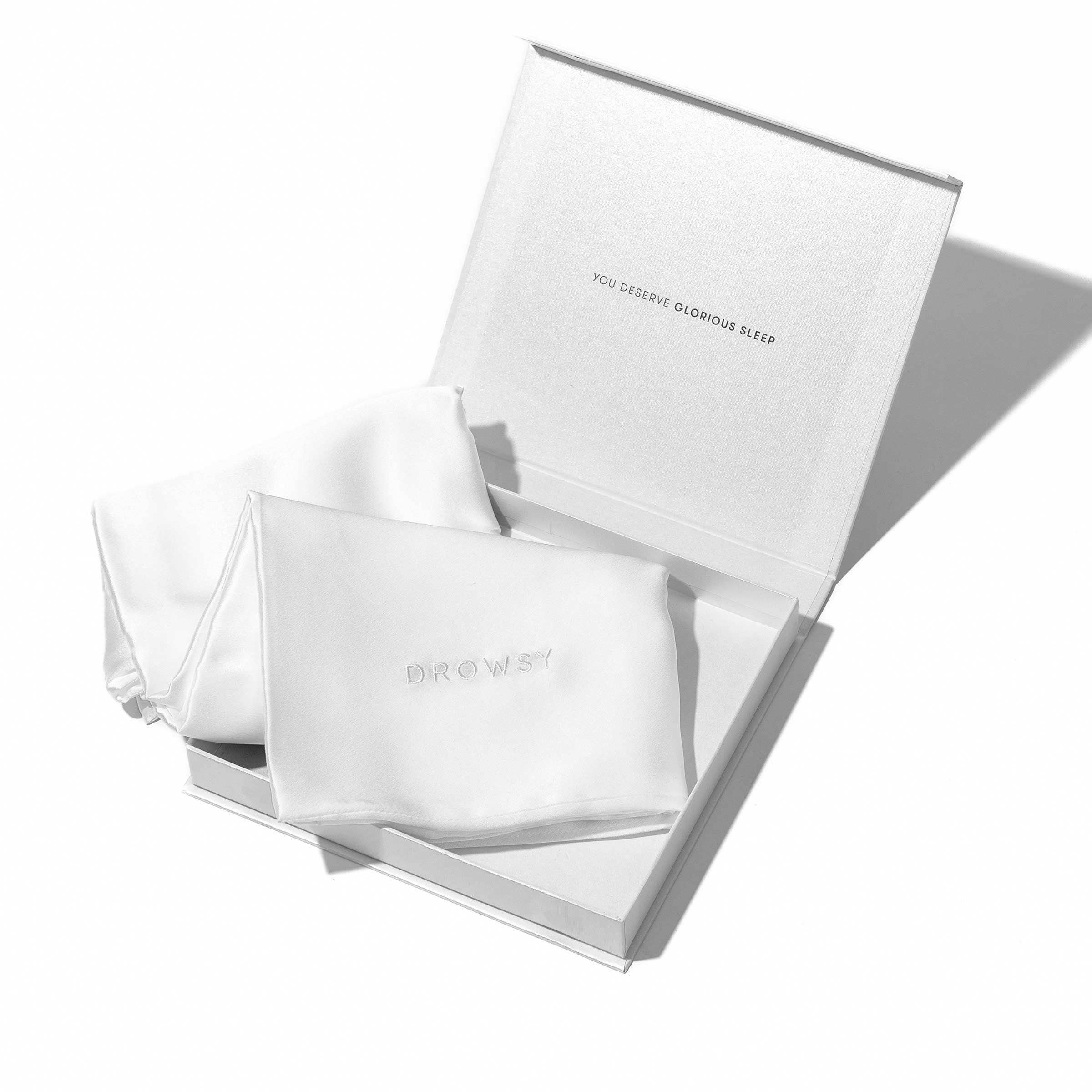 100% washable. Elevate your sleep to the next level with this Drowsy white silk pillow case. The cult favorite of beauty editors, silk reduces the friction that causes long term damage to hair and skin and night. This heavenly white silk pillowcase glides over skin making bedtime irresistible.