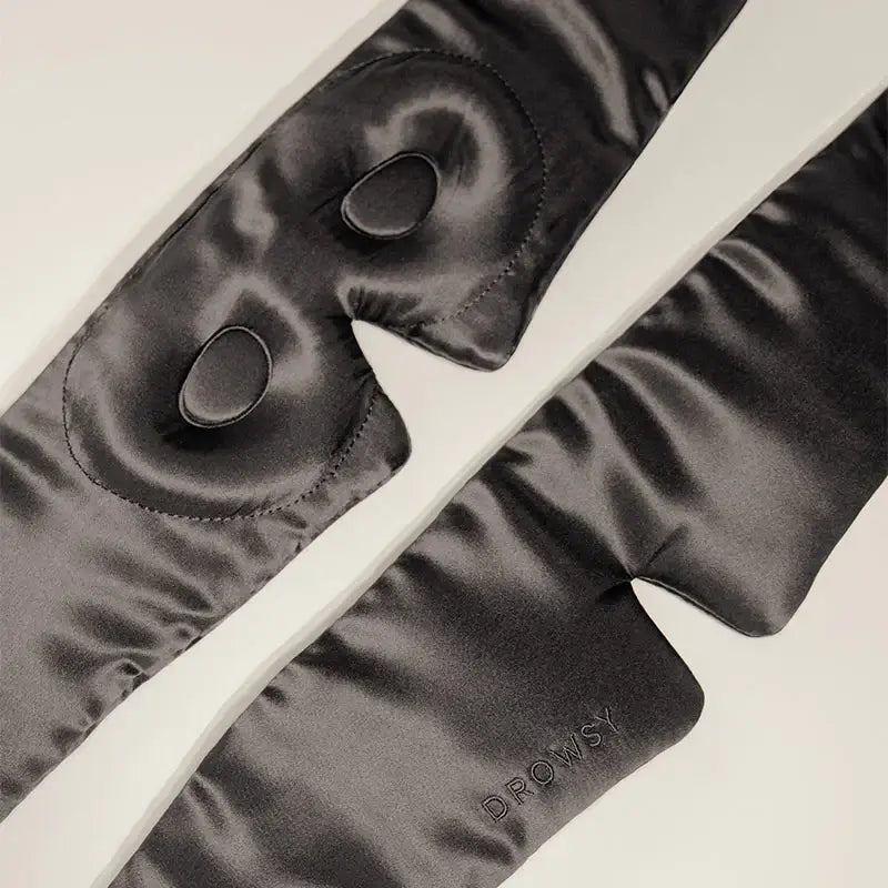 This charcoal grey silk eye mask is a revolution in rest. Clinically proven to unlock transformative skin results as you sleep. The fully adjustable, light-blocking design provides instant relief to weary eyes. Drowsy delivers uninterrupted, restorative beauty sleep every night. Wake up daily with smooth, glowing skin and renewed energy. 100% washable grey sleep mask.