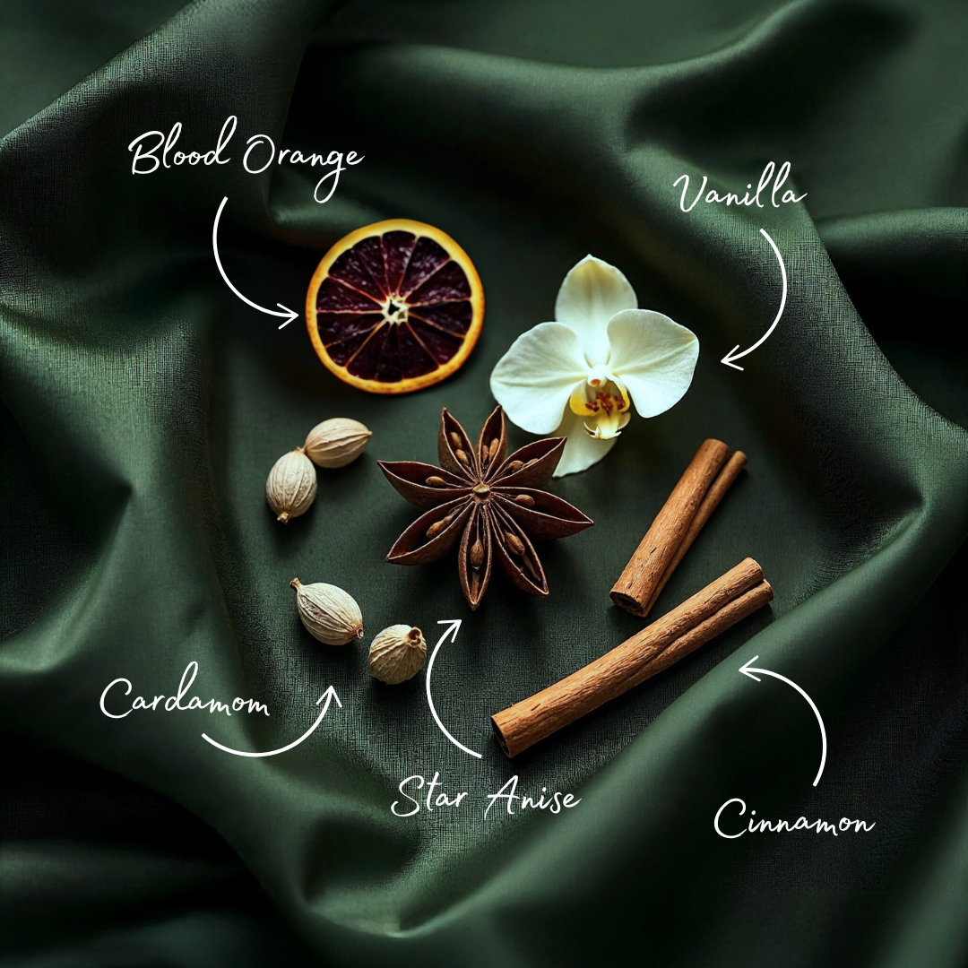 Step into a world of timeless elegance with Gilded Spice, a luxurious bath soak that captures the warmth and opulence of the season. Notes of zesty blood orange and ginger unfold into a heart of cinnamon leaf, cardamom, and star anise, wrapped in soft vanilla, resinous benzoin, and rich patchouli. This indulgent blend evokes candlelit salons bathed in winter light, heirloom tables laden with feast and finery, and the quiet grace of rituals passed down through generations. A soak that lingers on the skin like silk and memory—sophisticated, nostalgic, and warmly intoxicating.