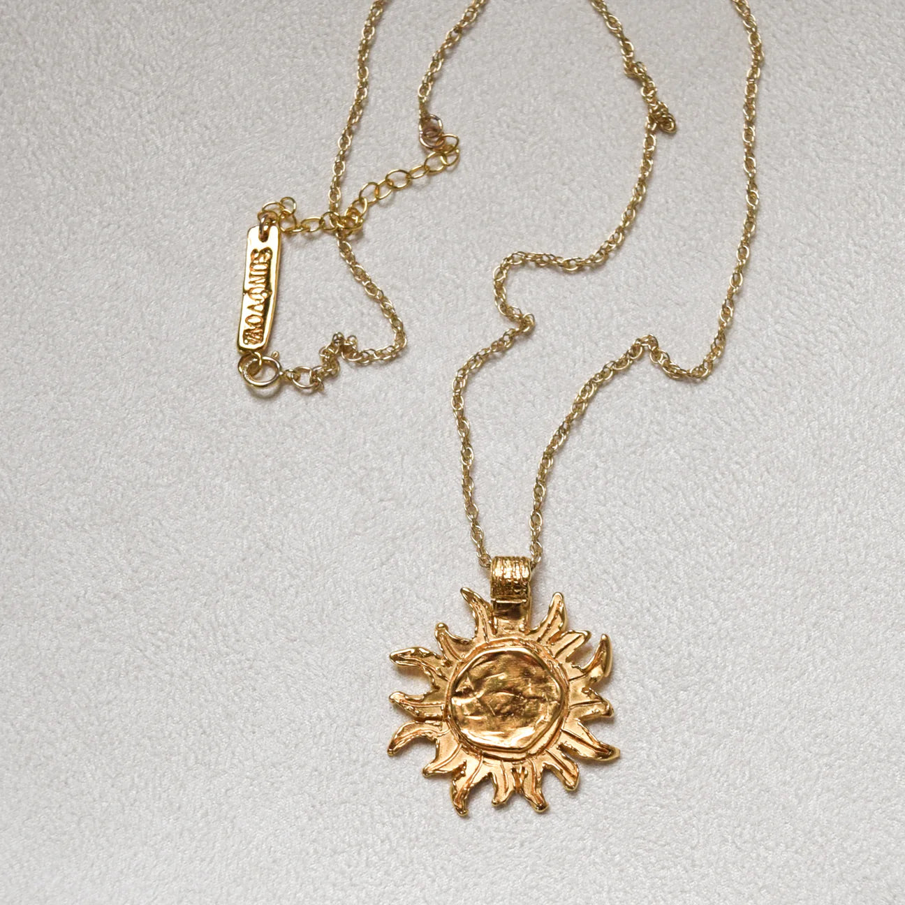 -Bespoke hand-sculpted sun medallion in vermeil and finished in 3-micron thick 14kt gold