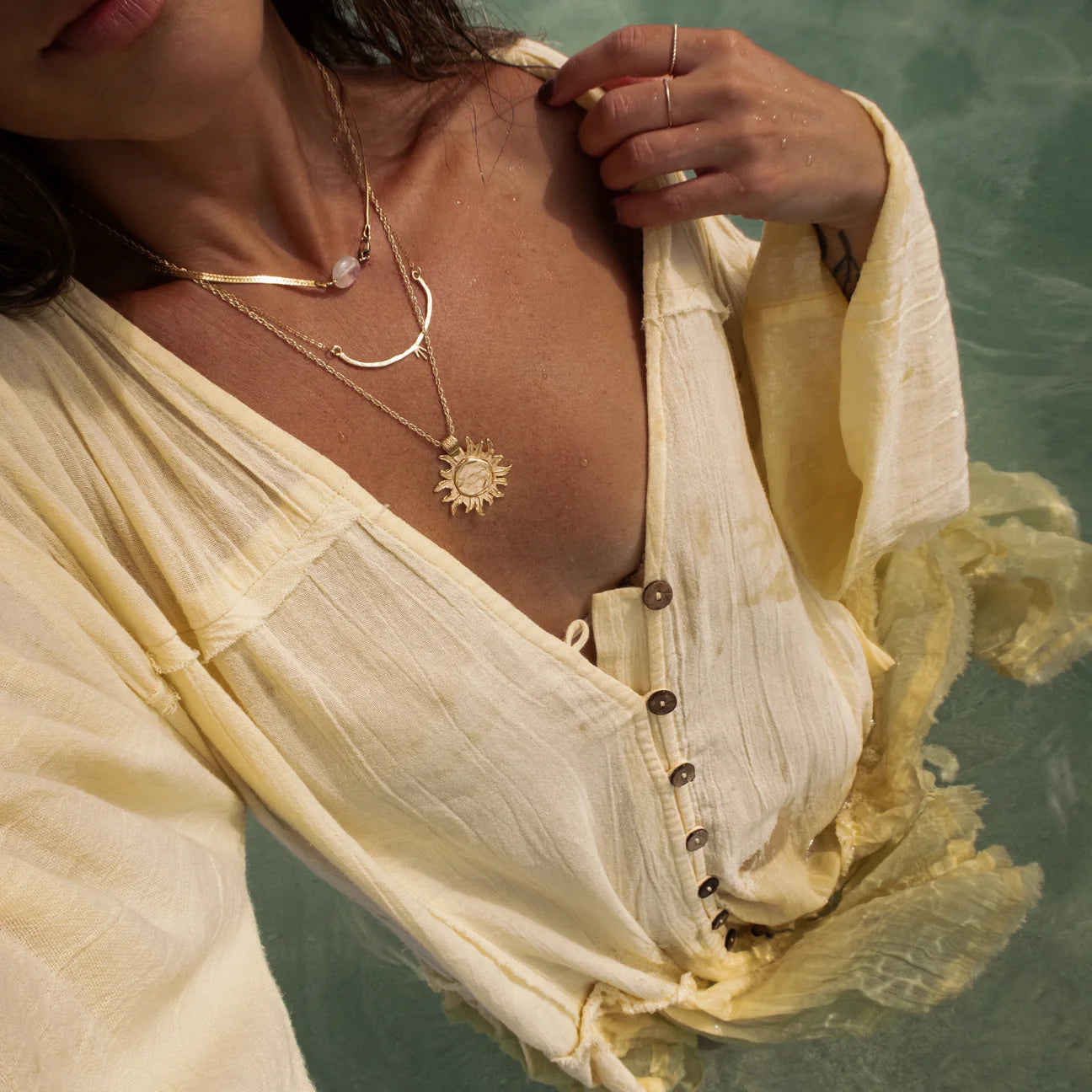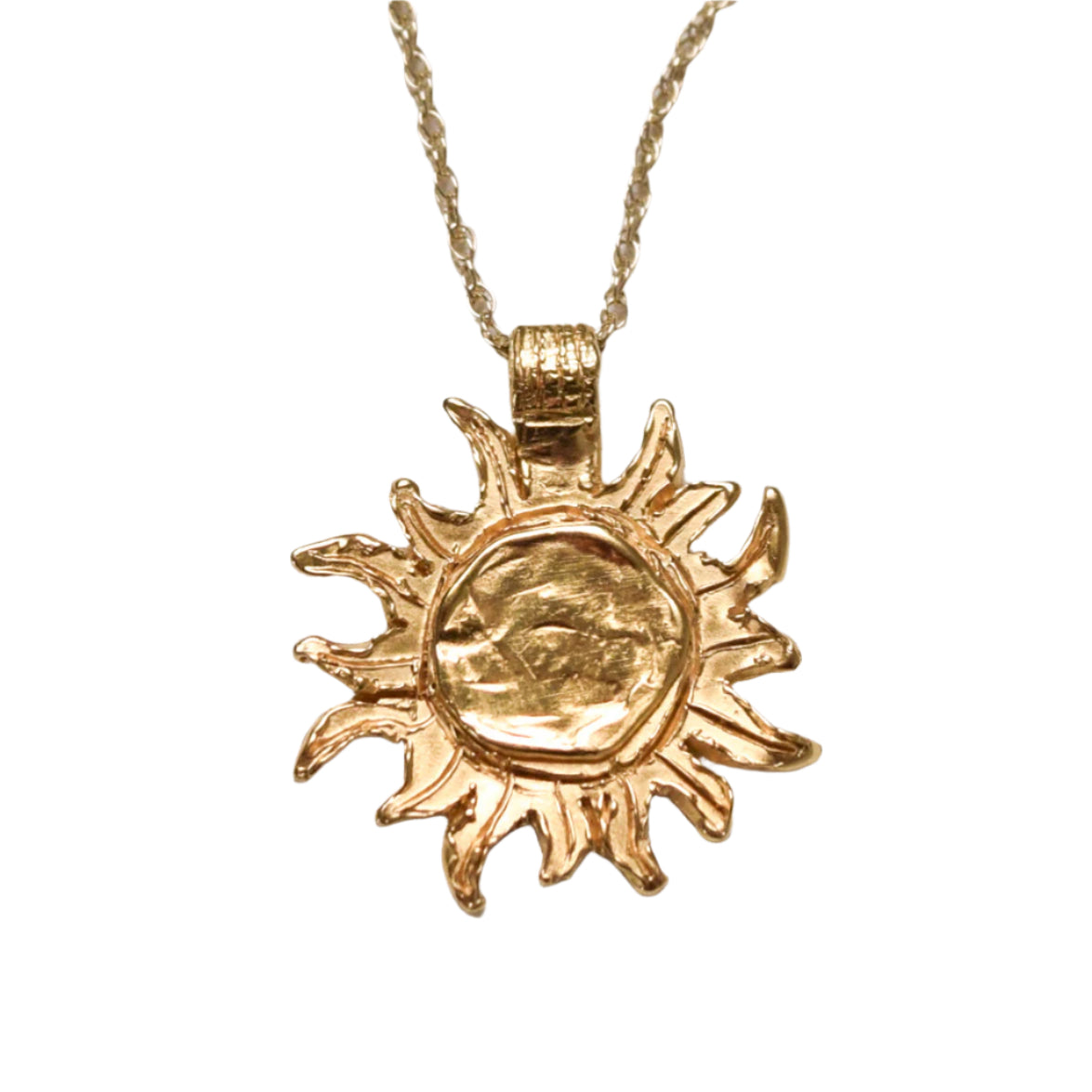 A bespoke golden sun medallion, intentionally designed to carry warmth and illuminate your days. Rooted in ancient reverence for the sun - our guiding light and source of abundance.
