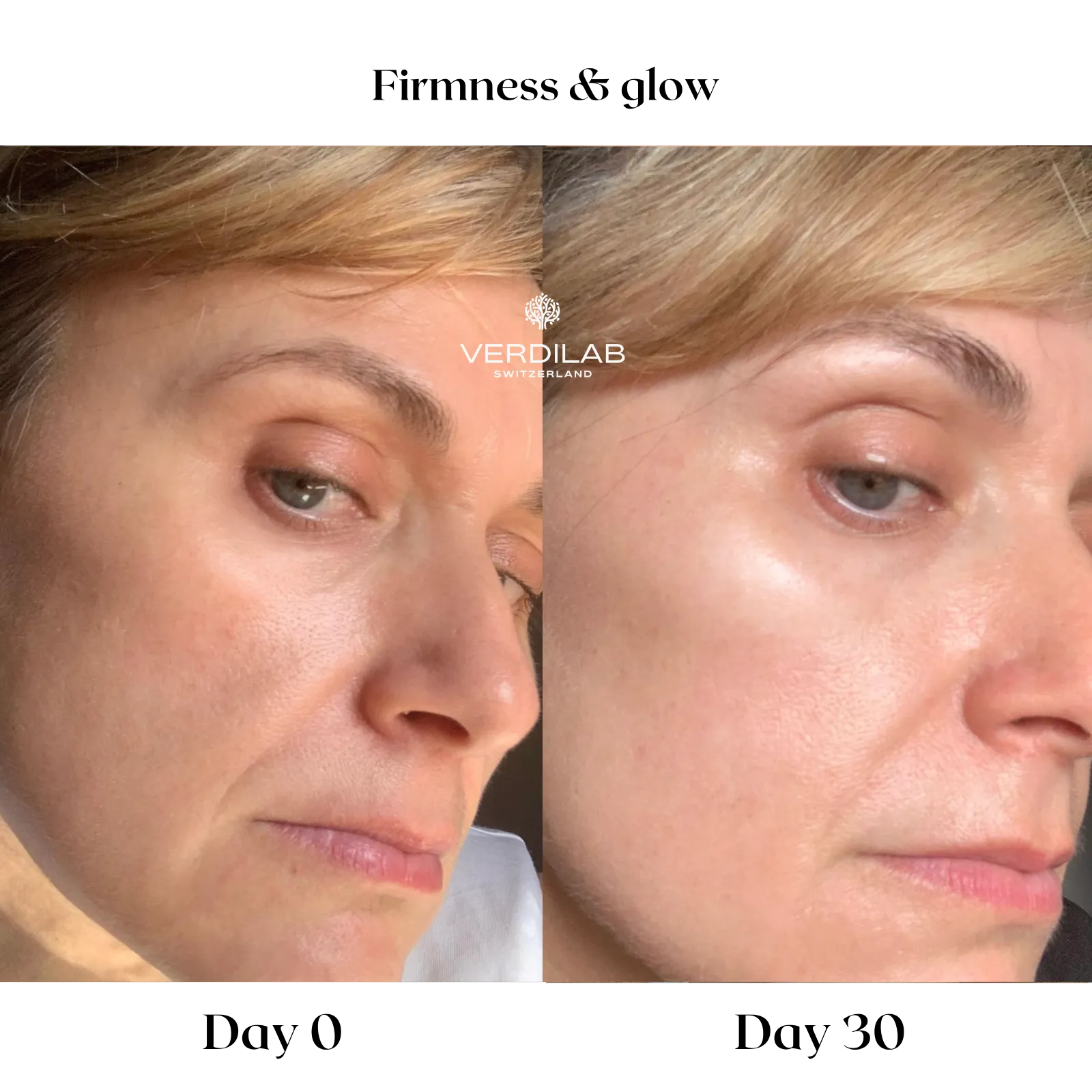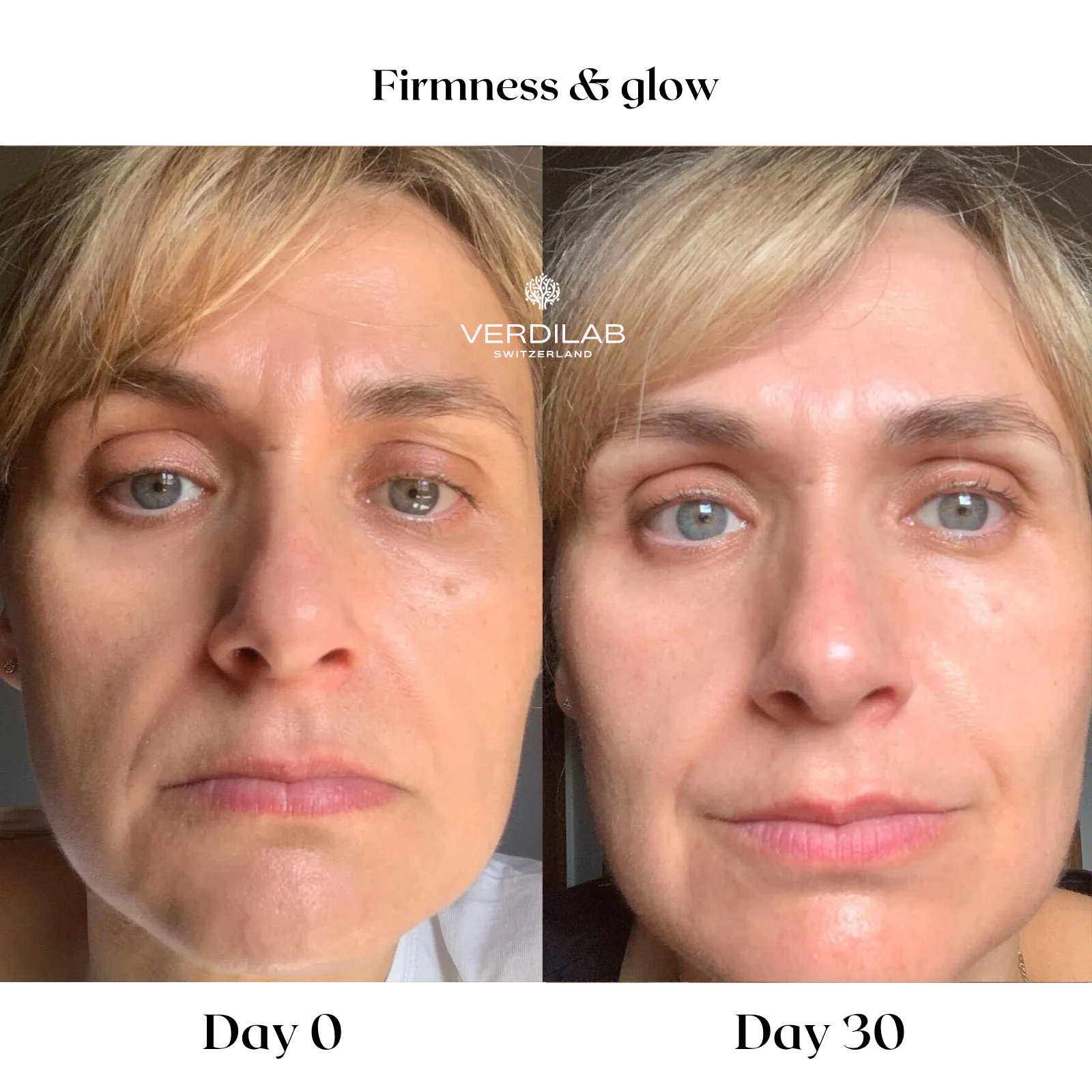 Apply a small amount of cream day and night onto face and neck in gentle upward motions.