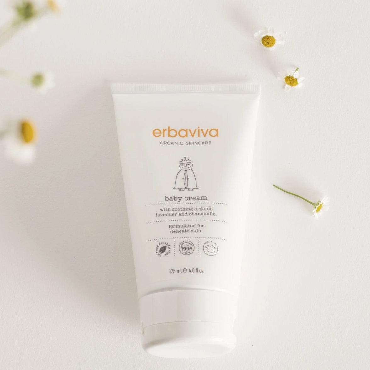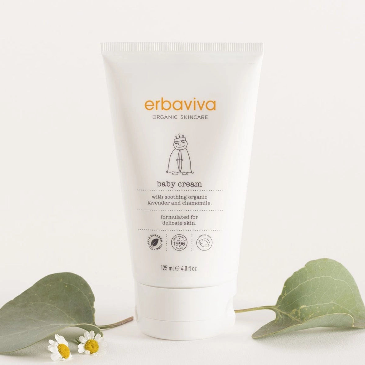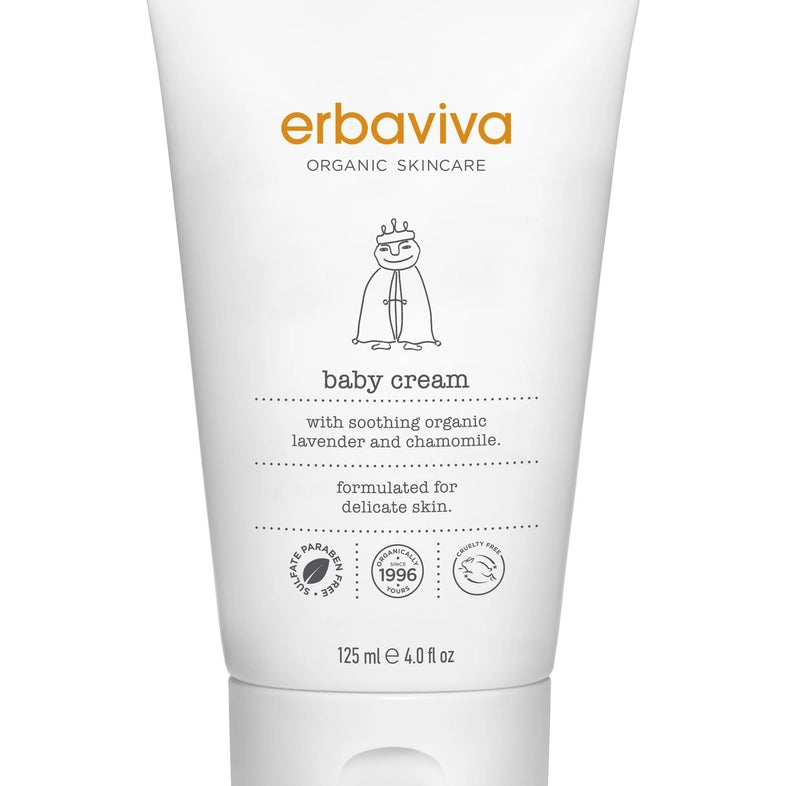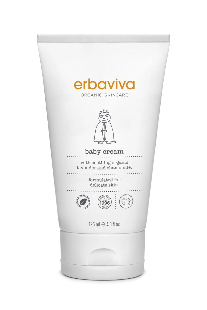 Completely nourishing and thoughtfully made with the highest quality natural emulsifiers and organic essential oils. Erbaviva organic baby cream moisturizes tender and sensitive skin with its super-clean and luxuriant blend of premium ingredients including aloe, shea and cocoa butters. Soothingly scented with Erbaviva’s custom blend of organic lavender and chamomile essential oils. This all-natural baby ointment is a purely perfect formula for body and face on both baby and sensitive adults.