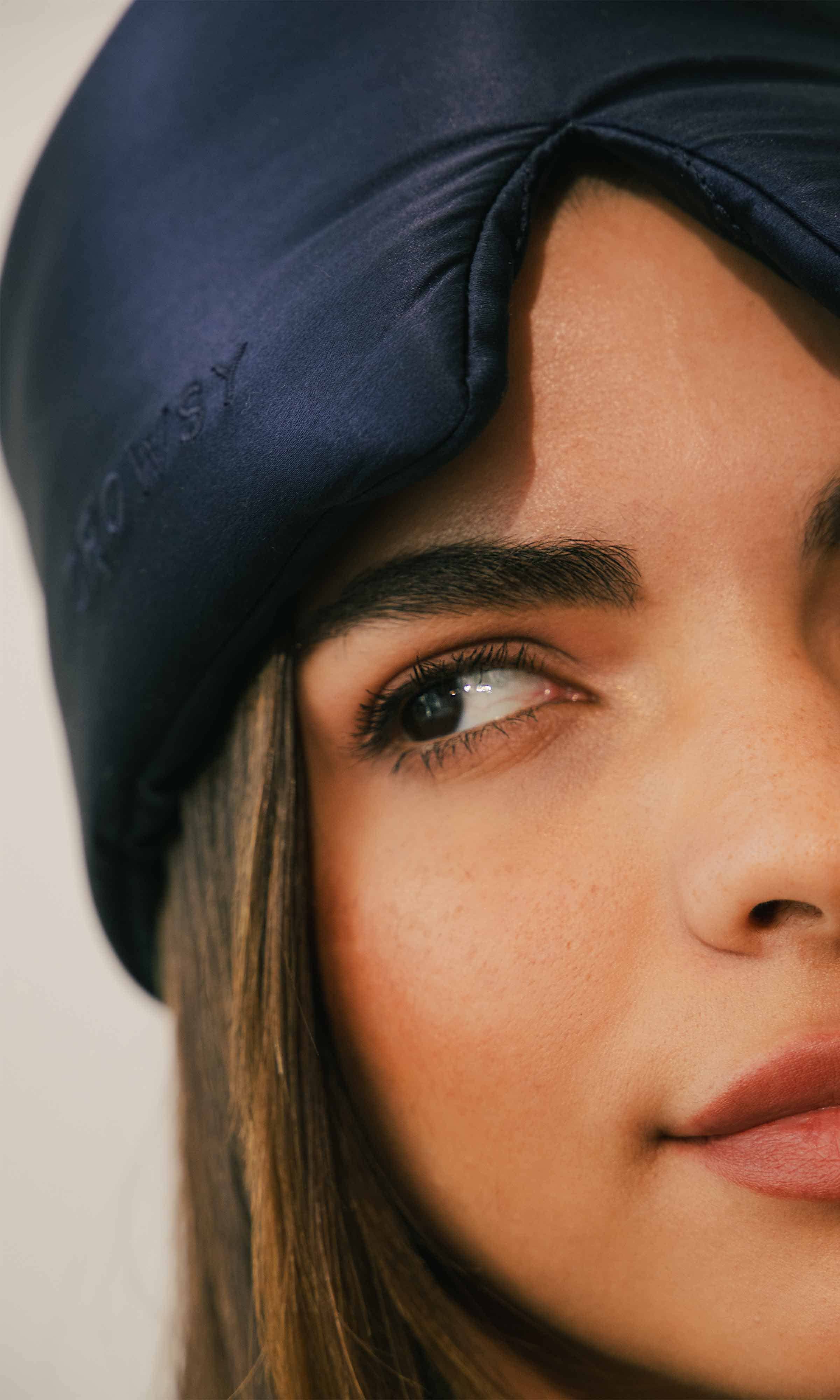 Our unique, blue eyelash-protecting silk sleep mask is the ultimate retreat for tired eyes. Designed for long natural lashes, extensions, and for sleeping with zero-pressure on your lids. The fully contoured, silk-lined eyecups block 100% of light whilst keeping your lashes protected & pristine from dusk till dawn.