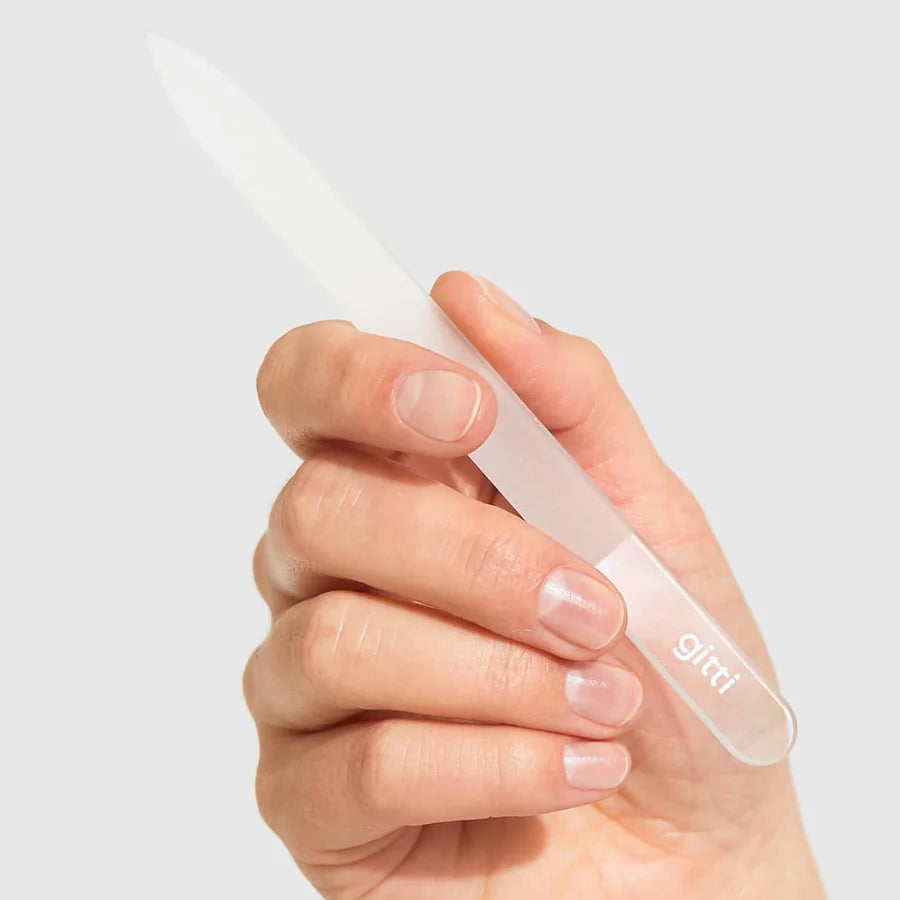 Gently file from one side toward the center of the nail. Finally, shape the nail tip.