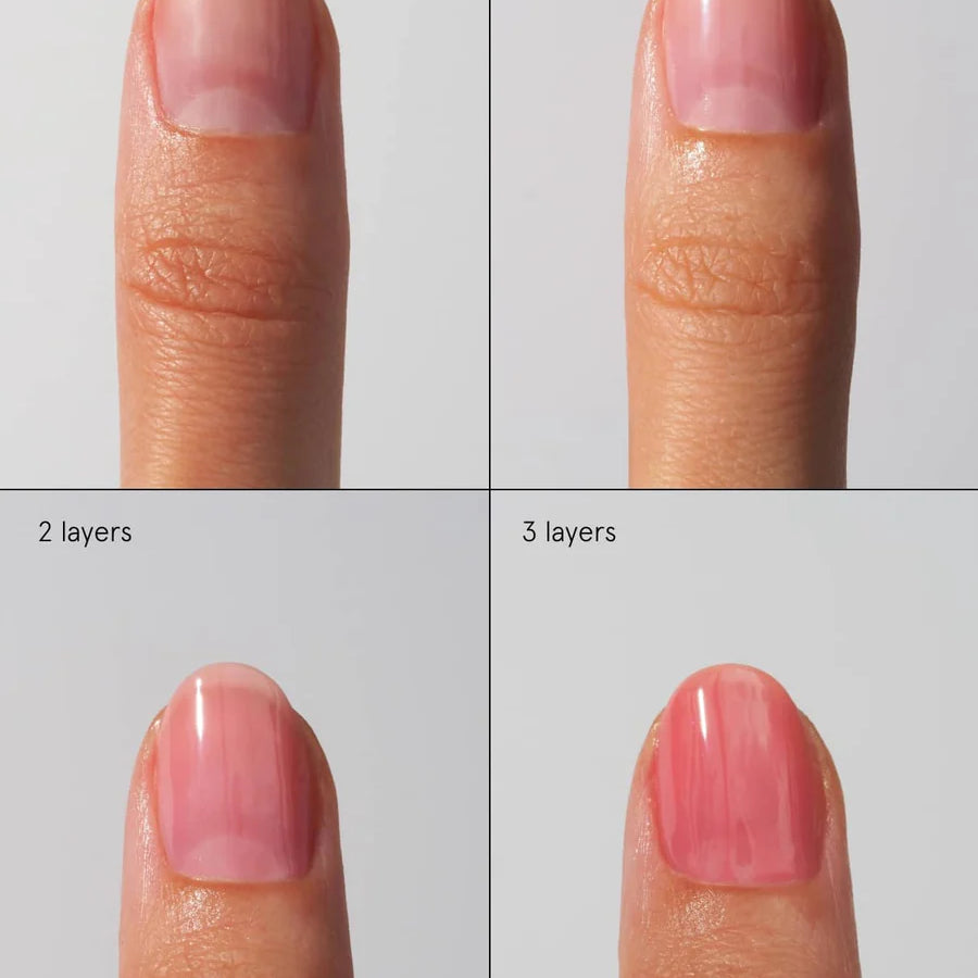 Apply a thin layer to clean, dry nails. For a more intense result, apply a second coat. Allow to dry thoroughly. No additional base or top coat is needed.