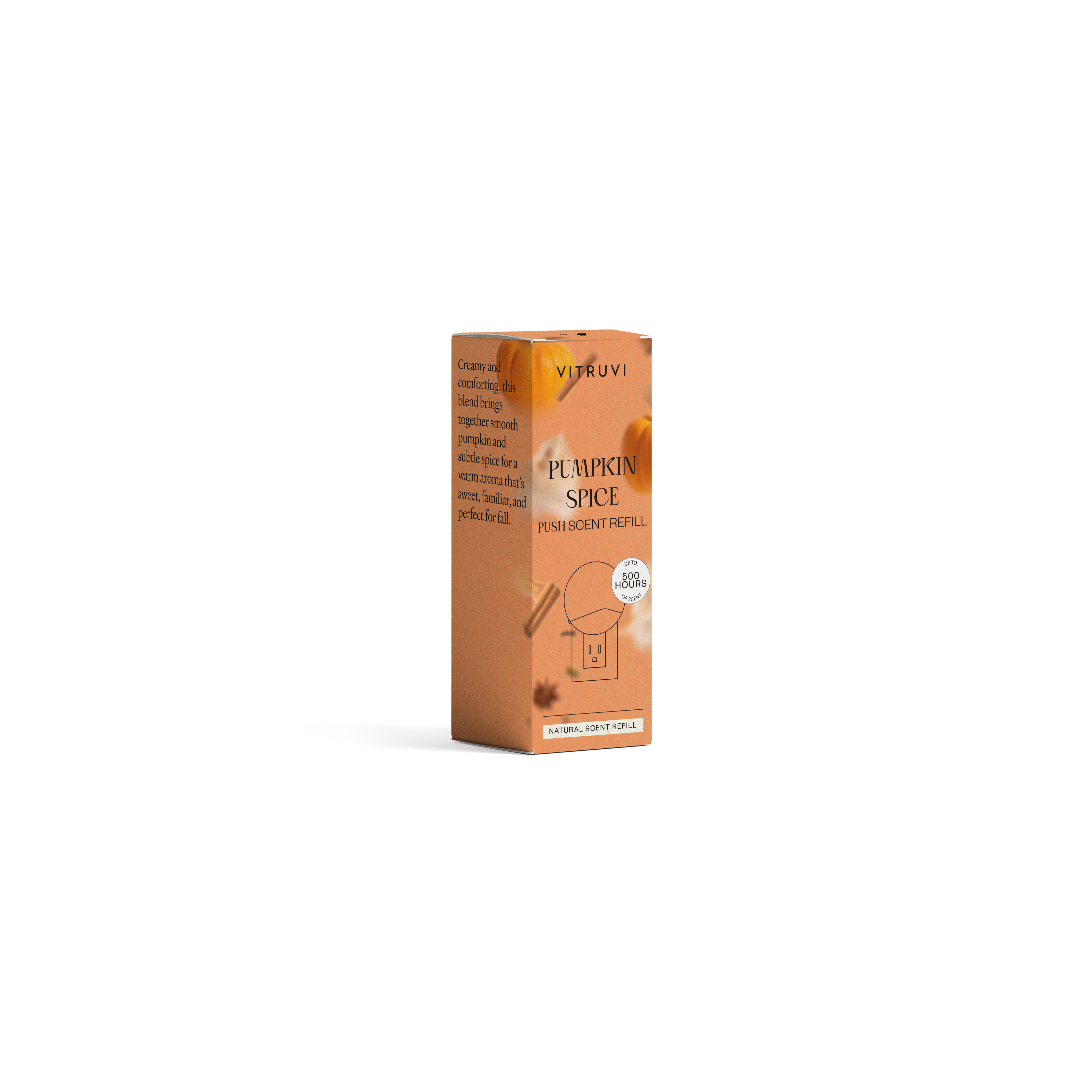 For use with Vitruvi's Push Plug-In Wall Diffuser. Nothing says fall like Pumpkin Spice. Warm and spiced just right, this seasonal favorite features rich notes of Cinnamon and Nutmeg, blended with smooth Pumpkin for a comforting, nostalgic scent you will instantly recognize. Perfect as a candle alternative, this room spray is ideal for autumn resets, fall-themed displays, and gifting assortments leading into the holiday season. Whether used to freshen up a cozy home or added to a Thanksgiving or Christmas gift set, Pumpkin Spice is a reliable, best-selling scent for the cooler months. Scent Notes: Cinnamon Nutmeg Pumpkin