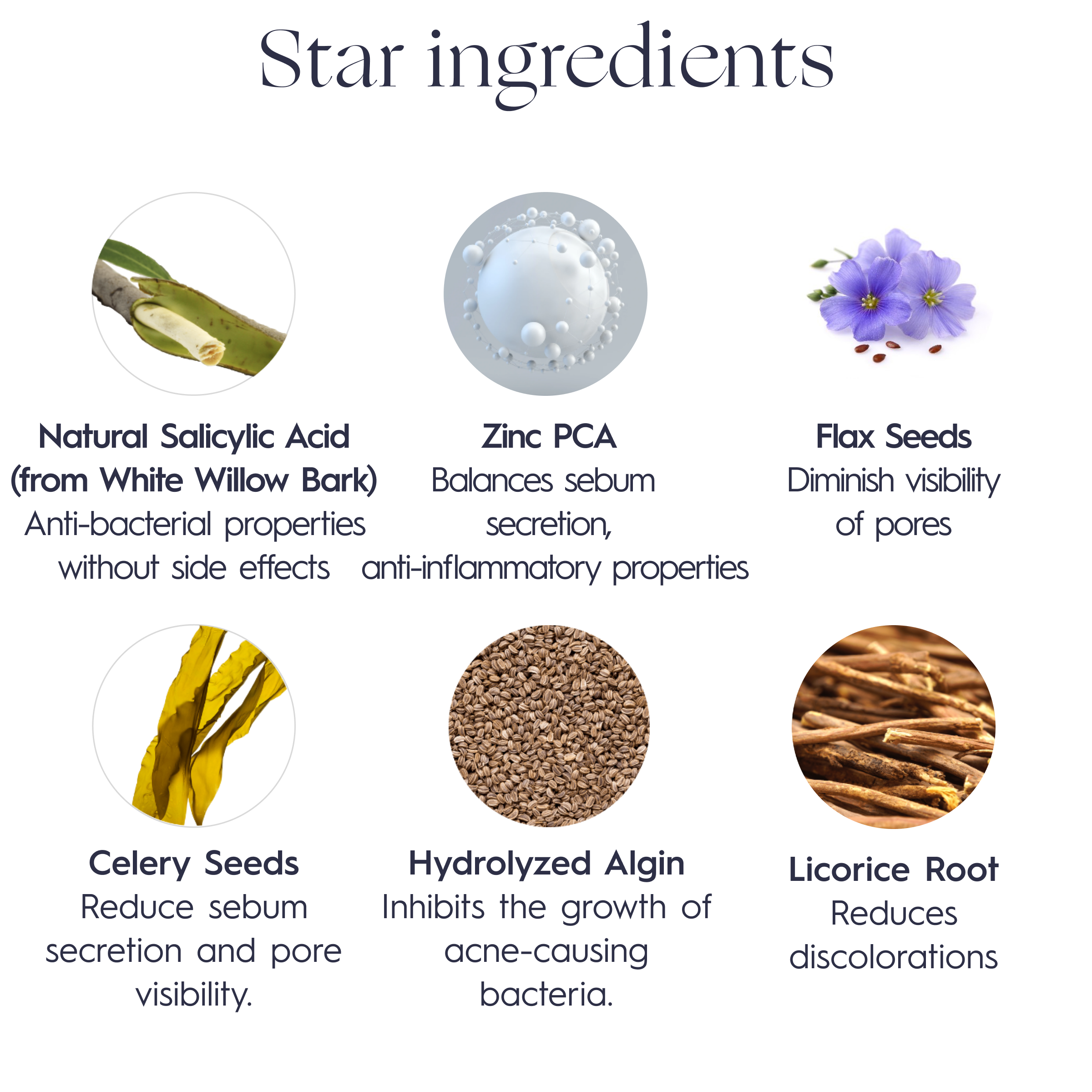 A perfect, all-natural daily care specifically designed for oily or combination skin with blemishes, enlarged pores and fine lines. It provides immediate and long-lasting dermal hydration, visibly clarifies and rebalances the complexion, targeting excessive sebum secretion without over-drying.